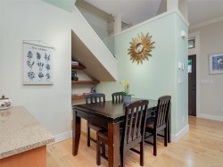 On a lovely tree lined street in a prime James Bay location, you’ll love this stunning 2 bedroom/3 bathroom south facing corner unit townhome. The main level has impressive 10 foot ceilings and a well designed open layout with maple floors. elegant chef's kitchen with stone counters, s/s appliances and island with a prep sink. Lovely feature gas fireplace in the living room, a dining area, powder room and laundry. Sunny front porch. Upstairs, the elegant primary bedroom offers luxury with a walk-in closet and ensuite with heated stone tile floor plus its own balcony to enjoy the sunsets. Beautiful new carpet. Good sized second bedroom and stylish main bathroom with walk-in shower and heated tile floors. Don't forget the large heated lower storage space. Separate heated garage. Pet friendly! This quiet, private townhouse is on sunny side of this well-maintained 4-unit complex. Only a short walk to excellent amenities, great restaurants, shopping and Victoria's vibrant Inner Harbour.