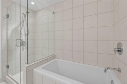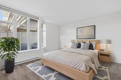 The 'Chelsea' is one of the more desirable addresses for higher end condos in Victoria. This One Bedroom + den, 2 bath unit has west facing exposure overlooking the beautiful private courtyard. Primary bedroom has 5 piece ensuite with separate shower and soaker tub. Den has built in Murphy bed and can easily be used for a bedroom/office combo. Built by Concert this Steel and concrete building makes for quiet neighbours. 2 pets allowed. Hardwood floors in main area and new carpet in bedroom. Well appointed kitchen with new fridge. Quartz countertops, higher end stainless steel appliances, Electric fireplace and nice sunny balcony for private outdoor moments. The building has an in house care taker, secure underground parking, separate storage locker, bike storage, gym, residents lounge and a well run strata. Walk score 97, Bike score 90, Transit score 91. Short walk to Cook Street Village, Downtown, Dallas Road. Very quiet area away from the high rise downtown buildings. Vacant