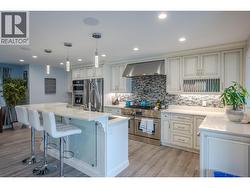 Home has been beautifully re-built from the studs out. Fantastic location overlooking an idyllic waterway and the vineyards of Quails Gate and Mission Hill. When people dream of an Okanagan lifestyle this is what they picture. Full sliders open up to the easy-care backyard where the lakeside and your private boat dock awaits. An outdoor kitchen completes the setting and allows for extended outdoor enjoyment with the built-in ceiling heathers. Top of the line appliances throughout and an open concept living area. Main bedroom ensuite complete with steam shower and over the top multi-function toilet. Extra room is located in the fully finished separate garage complete with its own bathroom, has not been included in the sq footage. (id:27)