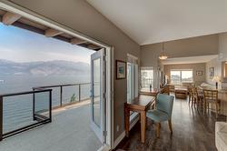 Welcome to your dream home at The Cove! This luxury 3 bedroom, 3 bathroom Penthouse, almost 1,500sqft is perfectly located front-row, lakefront with unparalleled panoramic views of the lake, surrounding mountains, and twinkling city lights. A ginormous 743 sq ft wrap-around deck, this is truly a lake view like no other, so close you’ll feel like you can reach out and touch the water. Inside, you’ll find spacious living spaces with newer engineered hardwood floors, granite countertops, and rich wood cabinetry. Three sets of French doors seamlessly connect indoor comfort with outdoor living, perfect for entertaining or unwinding in total serenity. Offered fully furnished and turnkey, this unit is move-in or rental-ready, with optional on-site rental management available. Located in a year-round vacation destination, residents enjoy access to resort-style amenities including a fitness center, private sandy beach, restaurant & lounge, two seasonal pools with hot tubs, waterslide, tennis & pickleball courts, the pampering Spa at The Cove, a private theatre, putting green, and scenic fire pits & BBQ areas. The Cove also sits directly between two world class alpine resorts, only 75 minutes to Big White Mountain and 95 minutes to Apex Mountain Resort. Family- and dog-friendly, this unit can’t be beat! This is lakeside luxury living at its finest, whether you’re looking for a private escape, a savvy investment, or both, allowing short term or long term rentals.