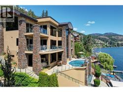 Nestled in the exclusive gated community of Sailview Bay, just 10 minutes from downtown Kelowna, this stunning 8,007 sq. ft. 4-bedroom, 8-bathroom estate is a true architectural gem. Designed with elegance and precision, it seamlessly blends luxury and comfort. From the moment you step through the grand glass entrance, the home’s quality and craftsmanship are undeniable. Spanning four levels with an elevator for easy access, it offers an exceptional layout. The upper level features three guest suites, each with their own private washroom, a laundry room, and a custom office. A tandem garage completes this level. The main floor is the heart of the home, boasting a spectacular primary suite with a spa-like ensuite and walk-in closet. A soaring great room with dramatic lake views flows into the dining area and gourmet kitchen. A secondary laundry and pantry ensure effortless functionality, while a second double garage provides easy access. Designed for entertaining, the lower level features a stylish bar, theatre room, and spa-inspired bath with a steam shower. Expansive patio doors open to an infinity pool, hot tub, and stunning outdoor lounge. Below, a private wine cave and poker room, carved into the cliffside, create a one-of-a-kind retreat. Waterfront amenities include a deep-water dock with two boat lifts, two Sea-Doo lifts, and a beachfront cabana with a private washroom. Offering luxury, privacy, and convenience, this is one of Okanagan Lake’s finest estates. (id:27)