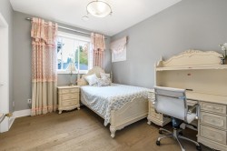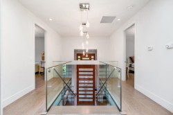 This luxurious 7-bedroom, 8-bathroom contemporary residence offers over 4,000 sq.ft. of refined living space with thoughtful design and exceptional craftsmanship. The main level features a spacious open layout with grand ceilings, elegant hardwood floors, and a gourmet kitchen with wok kitchen—perfect for entertaining family and guests. A legal 2-bedroom suite with a separate entrance provides excellent rental income or in-law accommodation. Upstairs showcases three generously sized ensuite bedrooms, while the lower level includes a media room, gym, and wet bar for ultimate comfort and leisure. With four laundry areas, a laneway house attached to a double garage, and radiant heating throughout, this home blends modern luxury with functional versatility.