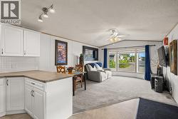 Meticulously maintained home in sought-after Jubilee Park, just a short stroll to the lake and private beach. This bright and inviting residence features 3 bedrooms plus a versatile den—perfect for a home office or flex space. Recent updates include a 4-year-old AC system, newer high-end appliances (fridge, gas stove, dishwasher), ensuring comfort and convenience. The thoughtfully designed layout offers a bright, airy feel with plenty of natural light. Outdoors, enjoy low-maintenance living with synthetic front lawn, an irrigated backyard oasis, and a durable rubberized parking pad with room for two vehicles. Entertain or unwind on the expansive TimberTech deck, soak in the luxury Jacuzzi spa, and take advantage of two storage sheds. All electrical has been inspected and is up to date for added peace of mind. With all homes in the community owner-occupied, Jubilee Park offers a friendly, secure environment—perfect for those seeking a relaxed Okanagan lifestyle. Park requirements: Minimum 730 credit score, no dogs (cats permitted if neutered and kept indoors). Park approval requires a minimum of 10 business days. (id:27)