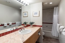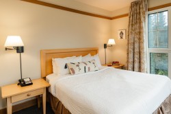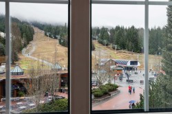 This is Le Chamois, the concrete building right at foot of Blackcomb Mountain. Unit 404 is at the highest level of the building that has small units. This unique corner unit gives you view of both Blackcomb Mountain and Whistler Mountain. Sitting by your living room windows, you can see everything happening on the Upper Village stroll, from the Blackcomb Gondola wait line, to Whistler Ski school gathering. The 2 bathrooms design makes the living room an independent sleeping area like a second bedroom, which is highly sought after on short-term rental market with potential for a higher return.