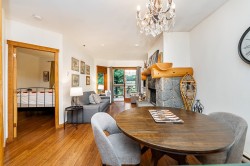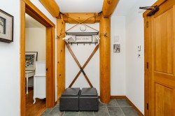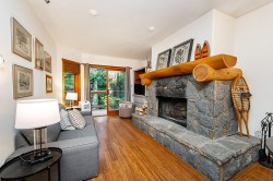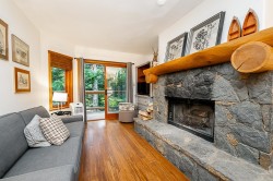 Ski right to the hot tub! Settle into this beautifully crafted log-and-beam mountain retreat. This spacious 1 bedroom + den home features an open layout with a direct path to your private patio and a gas-started wood-burning fireplace that sets the perfect post-slope atmosphere. Heated floors in the kitchen, foyer, and bathroom add year-round comfort. Enjoy easy Ski access to the Dave Murray run on Whistler Mountain, leading straight into Creekside. The boutique complex has only six homes and offers impressive amenities, including a large seasonal pool and a year-round outdoor hot tub. A private single-car garage provides secure gear storage. Phase 1 zoning allows nightly rentals, giving you the flexibility to earn revenue immediately. Open House Sat Dec 6, 3-5pm.