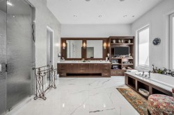 This magnificent three-level executive residence sits on nearly 25,000 sq. ft. of gated grounds and offers over 11,400 sq. ft. of living space. Designed for luxury and lifestyle, the home features 7 bedrooms, including 2 grand master suites, and a crafted layout ideal for family and entertainment. High-end appliances, auto security/control system. radiant heating, 2 HRV and 2 ACs, elevator, 2 kitchens, 2 wet bars, home theater, gym, heated swimming pool, barbeque & beautiful landscape garden & sea view.