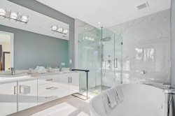 PANORAMIC OCEAN VIEWS in this beautiful WESTCOAST CONTEMPORARY home! This 4 bed 5 bath home is a stunning blend of modern design and cutting edge innovation. The chef inspired kitchen, features sleek cabinetry and a spacious island, seamlessly flows into the open concept living room, perfect for effortless entertaining. Step outside to the enclosed expansive deck with rooftop skylights, designed to maximize breathtaking OCEAN VIEWS and enhance your outdoor living experience. Premium features include: radiant heat, A/C, theatre room, Control 4 smart home, sauna and much more. Located within the highly sought after Semiahmoo Secondary (IB) catchment. Centrally located, steps away from White Rock Beach, restaurants, shopping and more. This one of a kind home won't last long!