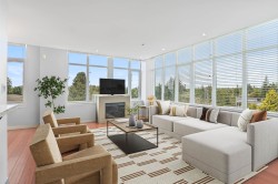 Ocean View at The Belaire, exceptional building and a prime location. Southwest corner, enjoy both ocean views and sunsets 1,333 SF of living space. Secure concrete & steel construction. A/C, plenty of windows streaming natural light. No buildings looking in at you - just fresh ocean air. Two bdrms and den, generous primary with balcony access & spacious 5 piece ensuite - ample closets. Enjoy the ocean view S/W concrete balcony 140 SF. Secure underground parking side-by-side at elevator for 2 cars and visitor parking avail. 1 storage locker. Transit out front or walk 2 blocks to groceries, shopping recreation and schools. 2 pets: max 50 kg in total. Schools: Semiahmoo Secondary. Nat gas & heat pump, A/C included in strata fee $755/Month. Digital floor plan & brochure available