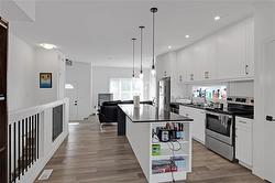 PASSIVE INCOME OPPORTUNITY! Nearly new duplex in the convenient, popular area of St. James. The exterior showcases stucco, high-quality horizontal plank siding, and expansive windows. Inside the main level, oversized windows fill the open-concept living and entertaining space with natural light, complemented by 9-foot ceilings. Both suites feature stylish kitchens equipped with stainless steel appliances, over-the-range microwaves, and convenient bar-top seating. A powder room completes the main floor layout. Downstairs, you'll find three spacious bedrooms, two full bathrooms, and in-suite laundry. The primary bedroom includes its own private ensuite. The upper-level suite is accessed from the rear and boasts vaulted ceilings in the living, dining, and kitchen areas, along with a private balcony, two bedrooms, one full bath, and its own private laundry. Additional highlights throughout include quartz countertops, sleek undermount sinks, smooth flat-finish ceilings, modern pot lighting, and separately metered utilities for each suite. Main floor unit is rented at $1850 a month. Upper unit is rented at $1300 a month. Your investment portfolio awaits!