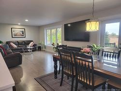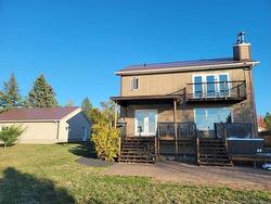 For more information, please click Multimedia button. Enjoy peaceful city living with water views just 5 minutes from downtown Bathurst in this 2-storey home offering space, privacy, and outdoor areas. The main level has an open-concept kitchen and living area overlooking the yard and the water, plus a main-floor office with windows and side-patio access, main-floor laundry, and central vacuum. Altogether there are 4 spacious bedrooms, 3 walk-in closets, and 3.5 bathrooms, with a finished basement adding a bedroom, full bath, and living room. Modern efficiencies include metal roofing on the house and garage, a geothermal heating system that uses energy from ground water, and multiple patio doors with triple thermal-pane windows. Recently updated appliances are included as is a 6-person outdoor spa with a view. Approx. 1,930 sq. ft. across two floors (finished basement not included). Parking and storage are exceptional with a 21' × 21' attached single-car garage and a 32' × 34' insulated detached two-vehicle garage just steps from the house, plus a paved driveway that accommodates multiple guests and driveway sports. Outdoor living shines with a west-facing rear deck for BBQs and sunsets over Bathurst Harbour, stone patios on the sunny south and west sides, and a 19,700 sq. ft. lot with 125' frontage (per SNB), fruit trees, and a vegetable garden. Walk across Bridge Street to connect with the NB Trail system - steps to outdoor recreation.