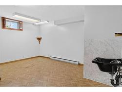This bungalow combines comfort, functionality, and plenty of extras! The bright eat-in kitchen offers ample cabinet and counter space with direct access to a large patio overlooking the private, fenced backyard. The main level features a spacious living room, two good sized bedrooms, and a full bathroom with convenient main floor laundry. Hardwood and ceramic flooring run throughout. The finished basement adds excellent living space with a large family room featuring built-ins, a former fully functional hair salon (easily convertible to a full bathroom or a bedroom), an additional finished room, half bath, storage, and a cold room.Outside, a paved driveway leads to a 24’ x 32’ insulated and heated garage with its own electrical entrance and workshop area. Additional highlights include a baby barn, gazebo, and beautifully landscaped yard with mature shrubs. PID to be subdivided by vendor before closing – see document attached.