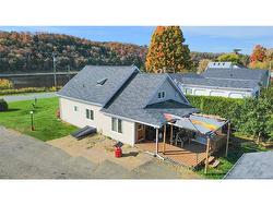 Looking to settle in a peaceful town with all the amenities you need—just steps from the stunning Saint John River? Welcome to this warm and inviting home, perfectly situated in the scenic and friendly community of Florenceville-Bristol. Step inside to a cozy entry/sitting area featuring a charming wood stove—ideal for relaxing on cool evenings. The spacious eat-in kitchen offers plenty of room for family meals, while the main floor also includes a separate laundry area, a full bathroom, and a bright family room with beautiful views of the Saint John River—perfect for hosting or unwinding. A versatile main-floor bedroom is currently set up as an office. Enjoy outdoor living with a private deck that includes a BBQ area and a hot tub—great for entertaining or soaking under the stars. Upstairs, you’ll find the primary bedroom with its own convenient half bath, plus two additional bedrooms—perfect for kids, guests, or a home office setup.This property is on municipal septic with a drilled well, offering a surprising level of privacy. You’ll also love the oversized, heated double garage and paved driveway.Outdoor enthusiasts will appreciate the close access to the NB Trail, ideal for ATVing, snowmobiling, or peaceful nature walks.Located near schools, the Northern Carleton Civic Centre (NCCC), McCain Foods, and more—this is your chance to enjoy small-town living without sacrificing convenience.