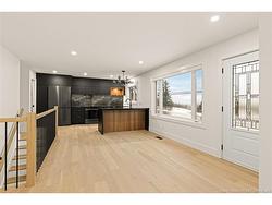 This beautifully renovated 2+2 bedroom home delivers a sleek, contemporary design with thoughtful upgrades throughout. Oversized windows flood the space with natural light and offer a welcoming city view, perfect for enjoying sunrises. The stunning kitchen is designed for both function and style, featuring Wildwood cabinetry, quartz countertops, walnut accents, a walk-in pantry, a pot filler, and high-end appliances. The open-concept main level is finished with engineered white naked oak flooring and flows seamlessly through the living space, ideal for everyday living and entertaining. A modern family bathroom features a floating vanity, a custom-tiled shower, and heated floors. The main level also includes a spacious primary bedroom with double closets, a second bedroom, and a generous mudroom with access from the garage. A striking open staircase with sensor-activated lighting leads to the fully finished basement, offering a warm family room with a fireplace, two additional bedrooms, a four-piece bathroom, and a laundry area. Further highlights include an electric car charger, new roof shingles on both the house and the garage, new overhead garage doors for the attached and detached garages, full spray foam insulation in the basement, and updated plumbing and electrical—a truly turnkey home with exceptional attention to detail. Call today to view!