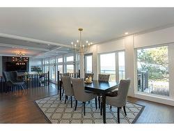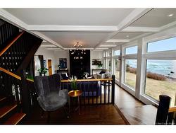 The moment these homeowners saw the view, they knew it was the one - there was no need to even look at the house. This beautifully rebuilt, contractor designed home sits on a breathtaking 2-acre oceanfront parcel. The house that once stood here has since been stripped down to the basement level and completely rebuilt, becoming the dream home these owners envisioned. With approx. 350ft of ocean frontage, you'll glimpse passing ships and maybe even spot a whale. No detail was overlooked in the rebuild - from the studs to the finishes. The home offers 3 bedrooms, 2.5 bathrooms, and a layout designed for everyday luxury. The primary suite boasts ocean views, a spa-like ensuite with a two-person tub, and spacious walk-in closet. The kitchen is magazine-worthy, featuring a pot filler, waterfall quartz countertop, gas stove, floor-to-ceiling cabinetry, and showpiece lighting. Just a few steps down, the sunken living room invites you to relax in style, with its coffered ceiling and modern dark brown-accented staircase tying the main spaces together with elegance and intention. Outside, enjoy the oversized double garage, veranda, closed-in gazebo with wood stove attached to the back deck, and exterior kitchen - all designed for effortless coastal living, just minutes from downtown. Exceptional space for entertaining inside and out. Better than move-in ready - this home is ready to spoil you. You won't need to lift a finger in this completely rebuilt, oceanfront dream.