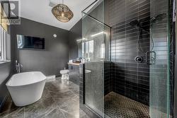 Discover the ultimate in luxury living at 46 Middle Ledge Drive, nestled in the prestigious Wexford Estates of Logy Bay. Backing onto the 5th green of the beautiful Bally Haly Golf Course, this stunning property offers a perfect blend of elegance, functionality with plenty of wow factor! Step into the expansive iron fenced backyard with over 1800 square feet of patio space, a heated pool and hot tub that creates the ideal setting for private gatherings. Inside, soaring 20-foot wooden accented sloped ceilings, a wood-burning fireplace, a stylish bar, elite millwork and custom mechanical blinds throughout add sophistication and comfort. The primary suite is a true retreat, complete with a spa-inspired ensuite and an expansive walk-in closet. Additional highlights include a 24' x 34' attached garage, 400-amp electrical service, a water filtration system, mini splits and so much more. Pet owners will also appreciate the custom dog wash station off the mudroom. Whether you're searching for a luxurious personal residence this one-of-a-kind property delivers on every level. (id:27)