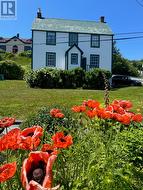 Slade / Hart House c. 1840, a Southcott Award winning registered heritage structure is one of if not the finest pieces of mercantile vernacular architecture in historic Trinity, centrally located on well landscaped grounds which include an abundance or herbaceous perennials, shrubs, berries, rhubard, herbs and vegetables. The 2 1/2 story saltbox with substantial two story linhay is of robust balloon frame construction with solid wood 2.5 inch full studded pit sawn and splined exterior walls, with interior recessed diagonal corner bracing. The current owners purchased the house which lay vacant for 25 years . A full restoration was undertaken to bring the house to current standards while preserving the integrity of interior and exterior traditional architecture. The kitchen includes recently laminated birch countertops, and it opens to the large family room fitted with new chimney and wood stove. The dining room with propane FP can host large dinner gatherings and adjacent formal living room, also with a FP. There is a full bathroom and laundry room on the main. The second level has a large master with FP, a second substantial bedroom and a large linhay, the width of the house, currently with two beds, sitting and office area. The attic with unique bell dormer has two additional finished rooms . All rooms of the house boast great views of the harbour and garden, especially on upper levels. Some of the well curated furnishings can be negotiable. The earliest closing date to accommodate the owners would be on Oct 15, 2025. (id:27)