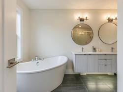Step inside and experience the perfect blend of luxury, comfort, and modern design. The bright open-concept main floor showcases a chef’s dream kitchen complete with quartz countertops, a striking waterfall island, and premium GE Café Series appliances. The adjoining family room features a sleek electric fireplace with an elegant accent wall — creating a warm and inviting space for entertaining or relaxing. Walk out to a composite full size deck. Upstairs, retreat to your spacious primary suite with a beautiful tray ceiling, an impressive custom walk-in closet with built-in shelving and drawers, and a spa-inspired 5-piece ensuite featuring a floating double vanity and a custom tiled shower. Two additional bedrooms, a stylish main bath, and a convenient laundry room with ample cabinetry and a built-in washing station complete this level. The fully finished lower level offers even more space — a generous rec room perfect for movie nights or a home gym, a guest bedroom, and a full bath. This home is loaded with thoughtful upgrades:Custom lighting throughout, Energy-efficient heat pump for year-round comfort.