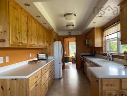 HOUSE ON THE HILL This riverfront house is a fantastic entertaining home. The current owner had large kitchen parties, hosting up to 150 people and was the event of the summer for musicians, locals and come from away folk. Built in 1980 by the Gaudet Brothers and is solid as a rock was designed by Barbara Mills (Original owner). Concrete foundation and spacious basement. The house is 3 quarters open concept with a sunken living room and a cosy fireplace insert to warm up in the cooler months. Bold timber wraps around the living room to keep anyone from making a misstep. The spacious primary bedroom with a new ensuite bathroom, spans the end of the house and is tucked away but easily assessable. There is a propane fireplace for warmth and atmosphere. Upstairs you can see all goings on in the living room, but also could curl up and read a book away from the main floor. 2 Bedrooms with a bathroom finish the upstairs area. The 9.5 acres flow gently towards the Margaree River with 268 feet of waterfront and romantic wandering paths to get there. Pop your canoe or kayak into the river and go up the Margaree or out to the Harbour. The side lawn is perfect for BBQs, outside parties and games or just enjoy a quiet evening. Then there are the sunsets which western Cape Breton is known for. Wildlife is plentiful here with the fields and woods, watch the hawks searching for food next door. You could not be in a better location than Belle Cote. There are 2 Beaches very close by. Margaree Harbour more for families and Belle Cote beach for the adventurous. Up the coast 20 minutes is Cheticamp an Acadian village for shopping, whale watching, restaurants and an excellent golf course. Also the well known Cabot Trail and Cape Breton Highlands National Park. Towards the south is Inverness with the world famous Cabot Links Golf course. Also shopping and the Inverness County Centre for the Arts. This is a must see home!