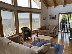 One of the finest properties you will find on Cape Breton Island. This home is a Post & Beam Chalet with a large great room and wrap around deck complete with screen porch perfectly positioned to enjoy the magnificent views of the Bras d'Or Lake from the Peninsula of Big Harbour Island. The property spans nearly 10acres with nearly 900ft of lake waterfront plus a nice pond at the foreground and an adjacent golden sand beach. This region is well known for its beaches, boating & fishing and is across the lake from the Dundee Resort & Golf. This home has an open kitchen with large island , dining & sliding doors to the deck. 2 Bedrooms on the main level plus a large multi-use loft space with bedroom. It also offers a Full unfinished raised basement with good size windows for future development options. The home is SOLID and the site is EXCEPTIONAL. PRICE IS SIGNIFICANTLY REDUCED FOR A QUICK SALE.