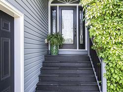 This beautifully updated bungalow, fully renovated in 2019, is nestled in a sought-after neighbourhood on a cul de sac. It offers stylish comfort on a meticulously maintained private lot. Step inside to find stunning hickory hardwood flooring throughout the main level, a cozy yet spacious living room, a bright dining area, and a modern kitchen featuring granite countertops, a center island with breakfast bar, and an open-concept design perfect for entertaining. The main floor also offers three generous bedrooms, including a primary suite with a large closet with custom built ins and full ensuite bath featuring a custom vanity with double sinks and glass shower with rainforest shower heads & Italian marble. An additional main level full bath features the same granite countertops as the other bathrooms. The fully finished lower level features a large family room with a propane fireplace, two additional bedrooms, a full bath, a den or office, laundry room, storage room, large custom built walk in closet and utility room—with convenient walk-up access to the garage. You can also enter through the double attached garage, where you will be welcomed by a thoughtfully designed mudroom, offering a practical space for the organized storage of outerwear and daily essentials. Outside, enjoy a large, private lot adorned with lush trees, vibrant shrubs, and thoughtfully selected plants—all beautifully maintained for exceptional curb appeal. The stone patio and matching stone retaining wall perfectly compliment the mature perennial garden. Don’t miss this move-in-ready home in a peaceful and well-established community. Close to English and French elementary and junior high schools.