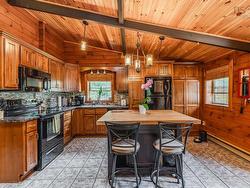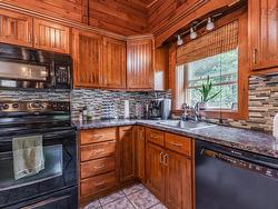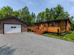 Welcome to your private paradise! This stunning three-bedroom, two-bathroom log home is a rare gem nestled in nature – just five minutes from the breathtaking Greenfield waterfalls, with direct access through your own backyard trail. Enjoy the peaceful sounds of country living as your everyday backdrop! This beautifully crafted log home features a main floor primary bedroom with a four-piece bathroom just steps away, plus a versatile second bedroom or office. The inviting open-concept kitchen and living room boast warm wood tones and a cozy woodstove, perfect for chilly nights. Downstairs, you’ll find a spacious rec room, third bedroom, an additional three-piece bath, and a laundry area, offering comfort and privacy for guests or family members. The property is a nature lover’s dream with meticulously landscaped grounds that compare to a golf green, a wood-fired sauna to unwind in, a detached garage, and an extra shed for storage. Located only 10–15 minutes from town, this home offers the best of both worlds – peaceful country living with modern amenities nearby. Don’t miss this unique opportunity to own a log home retreat surrounded by natural beauty and the magic of Greenfield living!