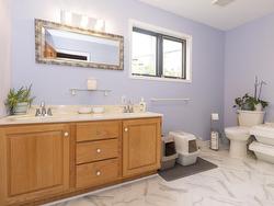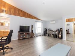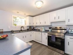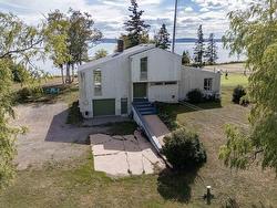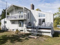 Enjoy sweeping views of the Bay of Fundy and Partridge Island from this stylish home, perfectly positioned on a 1-acre waterfront lot just minutes from Parrsboro. Overlooking the first green of the Parrsboro Golf Club, this property is ideal for golf enthusiasts, offering direct course access. The grounds include ample parking, a quaint pond, mature treeline, a bonfire area, and private beach access (some work required). Enter through a spacious foyer into the living room with vaulted ceilings, a stone fireplace, and patio doors opening to the deck. The bright, open-concept dining room and kitchen feature modern appliances and fixtures, with updated lighting throughout. The main floor offers a laundry room, guest bathroom, and a large primary bedroom (currently a family room) with an ensuite. Upstairs, find three guest bedrooms—one with a private balcony—and a full bath. The finished basement boasts a generous rec room, extra storage, and walkout access to the built-in garage. Since 2022, the property has seen extensive upgrades: new fiberglass oil tank, four heat pumps, a new water system, air sealing, new windows and patio door, chimney repairs, new flooring, and Starlink internet. Beautifully landscaped with major tree removal and a restored lane, this move-in-ready home invites you to enjoy the best of waterfront living.