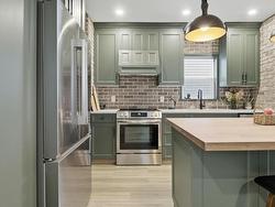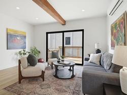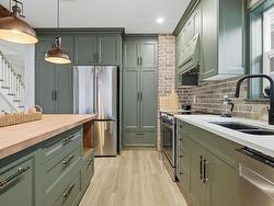 The classic craftsmanship of this 100 year old home has been perfectly maintained in this custom renovation. Timeless character blends seamlessly with modern comfort and every detail has been thoughtfully re-imagined - from the beautiful new open kitchen that features a butcher block island and chic brick backsplash to the beamed ceilings, antique bathroom vanities, original solid wood doors, and the many tasteful touches throughout. Effectively it is a new house with all new components - windows, floors, 200 amp electric panel and wiring, all new insulation and drywall, heat pump and electric baseboard heat, exterior doors, gutters, decks, and front siding. The layout has been redesigned to include two upper bedrooms , each with its' own ensuite bath ,vaulted ceilings, and extra large wardrobes with b/i drawers. The main floor kitchen (contains stackable washer and dryer), dining/living area is nice and open, along with a flex room in the front of the house which could be a bedroom, den, or office , along with a funky 2pc bath! Unfinished basement is clean and great for a workshop or storage area. All appliances as viewed are included.