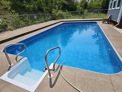 Your Dream Home Awaits! Escape to your own private sanctuary on over 4 acres of land. This spacious and well appointed 7+ year old 2-3 bedrooms, 3 bath raised bungalow offers a perfect blend of seclusion and modern comfort. Nestled away from the hustle and bustle of town, you can enjoy the convenience of open concept living, a mudroom featuring a half bath, along with a huge sun room overlooking the sparkling in ground pool. With its natural quietness and abundant natural light, this is the perfect spot to enjoy your morning coffee, read or host gatherings with friends and family. Plus it has a full walkout basement making the lower level a versatile space that can easily be transformed into a separate suite for an in-law or a "teen suite" especially with a second washer and dryer hook ups already in place! The property is equipped with in floor heating in the lower level and electric baseboards on the main floor, along with two heat pumps for optimal comfort. The kitchen features mahogany cupboards, solid surface granite countertops, an undermount sink, an island, a huge walk in pantry and more! The ICF basement is energy efficient and the home is plumbed for a pellet stove.The backyard oasis features an in ground pool with a shallow and deep end, a gazebo covering a hot tub, and a sense of tranquility that's truly unparalleled, a serene ambiance that invites you to unwind and relax. With wheelchair accessible doors, a partial wraparound deck, covered veranda, and numerous outbuildings, this home is a true gem in the countryside. Priced competitively and thoughtfully designed, this property is a rare find. Don't miss the opportunity to own this incredible property that offers the perfect blend of privacy, luxury, and comfort. Make this rural retreat your own and experience the joy of living in your own private haven!