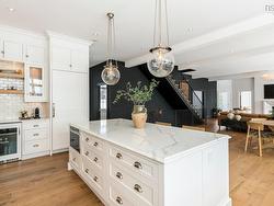 Welcome to this stunning home nestled in the prestigious community of Indigo Shores. This expansive property seamlessly blends luxury and functionality, offering an open-concept design that maximizes both space and natural light. The south-facing private backyard provides breathtaking, unobstructed views of the serene lake, creating a picturesque backdrop visible from the comfort of your great room, pool deck, and even while swimming in the inground heated pool.The thoughtfully designed outdoor space includes a dock perfect for fishing or relaxing by the water, as well as a generous (90x50) fenced area that ensures safety for children and pets. A convenient dog door offers direct access to this secure space. The beautifully landscaped property is enhanced by built-in yard lighting, highlighting the tree-lined driveway, garden beds, and house sign. An underground sprinkler system keeps the grounds lush and vibrant year-round. Built just six years ago, this home is equipped with state-of-the-art geothermal heating and cooling for energy efficiency. The durable metal roof and extra-wide eaves troughs add to the home’s low-maintenance appeal. The electric-heated 3-door garage, featuring epoxy flooring and a rear door for lawn equipment, provides ample storage and functionality. The basement level, constructed with ICF for superior insulation, includes a walk-out patio with stairs leading to the pool deck and a sunken garden visible from the basement bedroom. The open-concept living area connects seamlessly to the kitchen, showcasing 10ft ceilings with elegant faux white beams and a cozy fireplace. Luxurious bathrooms feature double vanities, walk-in tiled showers with rain heads and handhelds, as well as freestanding tubs with spray nozzles. This exceptional home is the perfect blend of comfort, style, and outdoor living, offering an unparalleled lakeside lifestyle in Indigo Shores.
