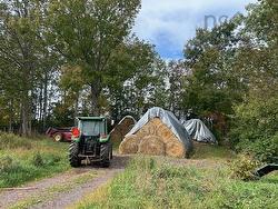 Agricultural Enthusiasts pay Attention! In a Picturesque setting you'll find 75-80 plus minus acres; 45 acres of pasture, 5 plus acres conservation land (DU leased) remainder is treed and bush. Outbuildings consisting of a workshop, machinery storage, horse stalls, and an open face beef barn with a 50x100 concrete manure pad. The beef barn is equipped with solar panels on the roof therefore keeping the electrical cost to a minimum. The well appointed 5 bedroom, 2 1/2 bath 1.5 storey home exudes quality throughout. The main floor offering an open concept custom built chef's kitchen with loads of solid wood cabinetry and huge centre island with marble top, dining nook, family room with doors leading to a large deck, living room with a wood burning insert fire place, large study and a separate office/craft room, 2 pc bath and laundry. The second level has a spacious primary bedroom and a massive walk-in closet, 5 pc ensuite, p;us2 bedrooms and a 3 pc bath. The basement level is consisting of 2 additional bedrooms, large entertainment room with built in storage cabinetry, bonus room, presently a sports room with concrete floor. The home has 3 levels of in-floor geo thermal heating for consistent comfort during winter months. The home/property needs to be viewed to be appreciated. The breathtaking setting is Approx 15 min to amenities/ beaches and more!