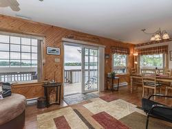 Welcome to your year-round escape on the highly sought-after Haines Lake! This beautifully designed three-bedroom, three-bathroom home is positioned to capture breathtaking, panoramic views that make you feel as though you're floating on the lake. The main level features a spacious primary bedroom complete with a full en-suite, walk-in closet, and direct access to the expansive lakeside deck—an ideal space to soak in the peaceful surroundings. The bright, sun-filled kitchen flows effortlessly into the open living area, with large windows that frame the shimmering water from every angle, cozy in all seasons with the pellet stove and heat pump (for efficient heating and cooling). Just off the living room, a second full bathroom adds convenience. Upstairs, you’ll find two uniquely designed bedrooms, each filled with natural light and spectacular views of the lake. These rooms could easily be reimagined into one extraordinarily impressive main suite, offering flexibility for your lifestyle. A third full bathroom rounds out the upper level. Outside, enjoy your own private dock—perfect for boating, swimming, or simply relaxing by the water. This property also features a wonderful-sized shed and an exceptional 30x36 metal garage, providing ample space for storage, hobbies, or workshop use. Whether you’re looking for a permanent residence or a luxurious weekend retreat, this Lake property meets all your needs and more.