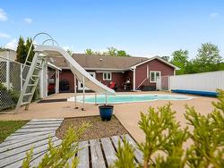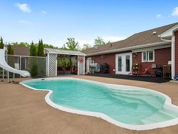 Incredible value with this 1.5 story home on 1.5 acres in the thriving community of Stewiacke! This uniquely laid out home is ideal for the busy family with plenty of space on one floor with the added convenience of single level living. The custom kitchen features quartz countertops, marble tiles, stainless appliances and plenty of storage. Kitchen is open to the family room with pellet stove for those cold winter nights. A second living space can be found just down the hall with bar area, dining and 2 pc bath - this is a great entertainment space. Primary bedroom has his/her walk in closets and soaker tub in separate room which is conveniently attached to the main floor bath. Two more additional bedrooms round out this main level. Exit the back door to the oasis that is your back yard! Fresh (or salt) water in ground pool with water slide! The area has poured concrete for easy maintenance, bar area, gazebo and is fully fenced and private. Need more space? There is a bonus room upstairs which is partially finished ideal for office or guest space. Still need more space? The 24x24 detached garaged is fully finished with heat pump! All of this situated on a large country lot with park-like setting, paved driveway,14x16 shed, covered porch and minutes the amenities of Stewiacke!. Walking distance to Winding River Elementary and 40 minutes to Dartmouth!