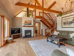Coastal Dream Home Designed for the Serious Boating Enthusiast! This exceptional property boasts over 300 feet of direct deep-water frontage, complete with a private wharf and floating dock—perfect for multiple watercraft and offering seamless access to the open sea. Custom designed by architect Robert Chipman, this 3,200 sq ft residence has been meticulously maintained since its construction in 2006. The open-concept main floor is ideal for entertaining, featuring a striking whitewashed pine ceiling with oversized beams, a beautiful shiplap fireplace, and expansive windows that frame breathtaking ocean views. A brand-new deck with glass railings ensures uninterrupted sightlines from every angle. The chef’s kitchen includes a large granite-topped island, walk-in pantry, and extensive cabinetry. The main floor also hosts a serene primary suite with private walkout to the deck—wired for a hot tub—and a combined laundry/powder room. Upstairs, a charming loft with opening skylights makes a perfect office or reading nook. The lower level features two spacious bedrooms, a full bathroom, utility room, storage room, and a large family room already plumbed for a second kitchen. An attached 22 x 45 garage includes a half bath, with a games room and massive storage space above. Outside, the beautifully landscaped grounds showcase rock walls, mature shrubs, fruit trees, and a full high-bush blueberry orchard. Outbuildings include a 45 x 45 commercial-grade steel building with woodshop loft, half bath, and its own electrical entrance, a garden shed housing the diesel generator (piped underground to the main home), and a chicken coop with a fenced enclosure. This is more than just a home—it’s an unmatched coastal lifestyle.