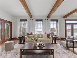 Where Craftsmanship Meets the Atlantic: A One-of-a-Kind Waterfront Residence. 13 Shepherds Lane is a private, gated oceanfront estate overlooking the world-renowned waters of St. Margaret’s Bay. Cloaked in hand-cut PEI granite and stone, the exterior carries an unmistakable coastal elegance that sets the tone for the 9,000 sq.ft. luxury home within. Showcasing exceptional craftsmanship, timeless design, and direct ocean access, the residence welcomes you with a grand foyer featuring wide-plank BC redwood floors, hand-hewn beams, and floor-to-ceiling Pella windows. The main level offers both formal and informal living spaces anchored by stone fireplaces and a striking arched stone-wall feature. The chef’s kitchen includes granite countertops, wood cabinetry, Thermador appliances, two soapstone sinks, and a dedicated butler’s pantry. The elegant primary suite features its own fireplace, walk-in closet, and spa-like ensuite, complemented by two additional bedrooms and a full bath. Two charming, light-filled rooms—ideal for an art studio or creative retreat—complete the upper level. The expansive lower level is built for entertaining, offering a large family room with a stone-ledge mantle, a second kitchen, wine cellar, sauna, exercise room, and an indoor heated pool with lounge areas and patio doors leading to a European-inspired dining terrace. Additional highlights include an attached three-bay garage with EV charger, sophisticated in-floor electric heating, a self-contained guest suite, a solid cedar wharf, gazebo, private shoreline access, and protected anchorage. Enhanced by MU-2 zoning, the estate offers exceptional versatility for those seeking additional options or future possibilities—completing this extraordinary oceanfront property.