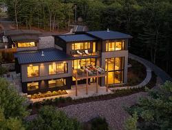 Terrace House stands as a rare architectural achievement, 10,417 sq.ft. of contemporary design envisioned by David Bourque, crafted to a standard seldom seen in Nova Scotia. Built to commercial grade specifications, this estate marries strength, precision, and artistry, setting a benchmark for luxury living. The construction tells its own story of permanence: ICF walls, an aluminum curtain wall system with Solarban 60 glazing, and a standing seam metal roof create a structure designed to endure. Inside, solid white oak beams soften the modern aesthetic, while radiant in-floor heating, including in the triple garage, ensures year-round comfort. Ten discreet ducted cooling units and a fully engineered mechanical system provide silent efficiency without visual interruption. With 6 bedrooms and 8 baths, the home balances intimacy and scale. The main level primary suite is a private retreat, complete with a lounge, double sided fireplace, walk-out patio, walk-in dressing room with laundry, and a striking ensuite anchored by a sculptural concrete tub. Additional bedrooms feature private ensuites, and the thoughtful flow adapts seamlessly to both family living and entertaining. The culinary space elevates daily rituals, offering a commercial grade gas range, dual panel ready JennAir refrigerators, a statement island, and a secondary prep kitchen. In the loft, you'll find a versatile suite with bunk beds, kitchenette, and bath extends the home’s hospitality, while the lower level provides a world of its own with a bedroom, full bath, secret room, wine room, bar, gym, and theatre. Refined finishes, including Emtek hardware, cold rolled steel railings inset with custom glass, Control4 smart automation, and book matched stonework, underscore the home’s craftsmanship. Set on 185 feet of frontage along Grand Lake, the property offers a rare combination of natural serenity and modern convenience, with downtown Halifax and the airport within easy reach.