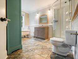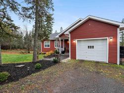 Discover an extraordinary bungalow situated on a private, treed acreage with abundant space to roam, flanked by an active brook on two sides. This standout property features a fully finished walk-out basement built with an insulated concrete foundation (ICF), providing durability and comfort. Designed with a smart layout, the home includes two spacious bedrooms on the main floor and an additional bedroom and a large den/office in the basement, accompanied by a full bathroom on each level. You'll appreciate the convenience of a mudroom that leads directly into the attached garage, along with a shed for ample storage. The kitchen is a remarkable highlight, boasting a massive island and top-of-the-line appliances, including a coveted pizza oven. Every detail has been meticulously crafted, with stunning custom decorative trim and elegant medallions throughout, perfectly paired with exquisite hardwood and ceramic flooring. Efficiency is a priority, with ETS heaters offering time-of-day power discounts and a newer heat pump ensuring optimal climate control year-round. Unwind on the inviting covered front verandah or explore the expansive 3.67 acres, where the soothing sounds of the babbling brook enhance your outdoor experience. Enjoy the ultimate in country-style privacy from your elevated deck, all without the hassle of a long commute to town.