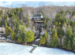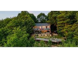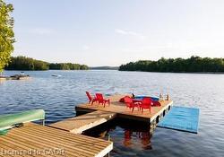 Perched above the pristine shores of Boshkung Lake, 1047 Whyman Road is a storybook four-season retreat where luxury and nature meet. This architecturally striking 2+2 bedroom, 2-bathroom home is set on a gently sloped lot with breathtaking panoramic views, western sunset exposure, and sandy walk-in waterfront perfect for families, investors, or those seeking refined relaxation.The elevated design blends rustic charm with modern minimalism. Wrapped in black exterior accents and tiered decking, the home invites you into open-concept interiors flooded with natural light. Wide-plank floors, vaulted ceilings, and a spa-like primary suite with soaker tub elevate every space. A panoramic barrel sauna and hot tub on the patio overlook the lake, creating a wellness sanctuary right at home.Upgrades include a new septic system, electrical panel, Starlink Wi-Fi, and year-round municipal road access. A new dock extends into deeper water, ideal for boating, swimming, and fishing across the renowned three-lake Boshkung chain. Whether hosting family at Christmas, retreating for a quiet weekend, or generating passive income from aproven rental history, this property offers both lifestyle and legacy. Just 20 minutes from Haliburton, Minden, and Sir Sams Ski Hill, this rare offering delivers on every front a luxury lakeside escape designed to impress.