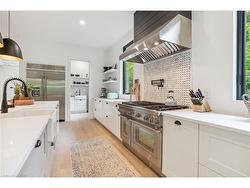 Modern prairie-style architecture in the heart of historic Ancaster. This recently completed two-storey custom house, features 5 bedrooms, 5+1 bathrooms with heated floors, a luxurious primary suite with a walk-through closet, and a main floor guest/in-law suite. Perfect for any culinary enthusiast, the gourmet kitchen includes a spacious waterfall quartz island, high-end appliances, two dishwashers, and a butler's pantry. This contemporary property offers two laundry rooms, three gas fireplaces, a cedar sauna, a heated salt water 32'x16' rectangular pool, and professionally designed gardens backing on Mansfield Park. There are integrated ceiling speakers, alarm system, security cameras, and whole house Cat6 wired network. Electrolux wine cooler in butler's pantry is a practical luxury as well as central vacuum and towel warmers and heated floors in all bathrooms. Large expanses of glass and an open floor plan allow for enjoyable circulation and a tranquil connection to nature throughout the house. Walking distance to restaurants, arts centre, scenic Ancaster Mill, Dundas Valley conservation area, and hiking trails, renowned Hamilton Golf and Country Club, all-season tennis courts, library, shopping, schools, and other amenities. Close proximity to McMaster University and major highways.