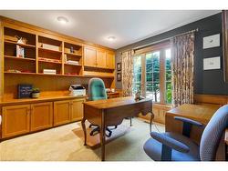 Dreams do come true! Tucked into a picturesque, tree-lined 0.61-acre lot that backs onto protected conservation land private greenpace protected by conservation authority, this pristine two-storey all-brick residence is a showpiece of space, style, and unexpected delights. Behind its classic façade lies a home filled with high-end finishes and memorable surprises—from the private multi-sport squash court and soothing sauna to a whimsical log cabin and stand-alone deck perfectly poised to overlook the vast green space beyond. Inside, six bedrooms and five bathrooms provide abundant room for family and guests. The main floor offers a full living room and a separate dining room highlighted by a graceful bay window. The outstanding kitchen—complete with gas stove, stone counters, stainless steel appliances, walk-in pantry, and a working island bar—flows naturally into a bright dinette and a beautifully detailed family room anchored by a wood fireplace with brick mantle. A sun-soaked reading nook, powder room, main floor laundry, and inside garage access add comfort and convenience. A sweeping oak staircase leads to the second floor, where the primary suite impresses with a spacious walk-in closet and a recently renovated five-piece spa-style ensuite featuring a soaker tub and separate shower. Three additional bedrooms share another five-piece bath, while two more are connected by a Jack-and-Jill bathroom with its own soaker tub. The expansive, fully finished walk-out basement extends the living space with a generous recreation room, exercise room with three-piece bath and sauna, and the show-stopping squash court. Outside, the backyard oasis beckons with a tiered deck and stone patio, perfectly framed by private landscaped grounds. This exceptional property offers a lifestyle where sophistication meets playful adventure. Luxury Certified.