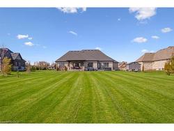 Tucked away on a prestigious cul-de-sac in Ariss, this extraordinary executive residence epitomizes refined luxury, privacy, and community. From the moment you arrive, the attention to detail and upgrades galore—both inside and out—set this home apart as a true showpiece. The open-concept main level is a masterpiece of design, showcasing hand-scraped engineered hardwood beneath soaring 9’ ceilings. In the living room, a striking coffered ceiling elevates the space with architectural elegance, while oversized windows flood every corner with natural light. A massive quartz island anchors the gourmet kitchen/dining area, surrounded by floor-to-ceiling custom cabinetry, premium finishes, a generous pantry, and high-end appliances, including a gas countertop range, double built-in ovens, and a MARVEL wine fridge. Step outside to the covered rear porch and adjoining composite deck, where a built-in hot tub invites relaxation overlooking the expansive backyard and the scenic Kissing Bridge Trail beyond. The primary suite is designed to rival any five-star spa, boasting a luxurious ensuite with a frameless glass shower, dual vanities with custom cabinetry, a spacious walk-in closet, and direct access to the deck and hot tub. Two additional bedrooms, a stunning 5 piece bathroom, and an elegant powder room provide comfort and sophistication for family and guests alike. The main-level laundry and mudroom combination is both beautiful and practical, finished to the same high standard as the rest of the home. The lower level is equally impressive, with soaring ceilings, engineered hardwood, a striking stone-clad gas fireplace, a 4 piece bathroom, and two generously sized bedrooms- creating the perfect space for guests, teenagers, or extended family. Ideally located just minutes from Guelph, K/W, and Centre Wellington, and a short stroll to Ariss Valley Golf Course, this home delivers an unparalleled lifestyle of elegance and convenience in a highly desirable rural setting.