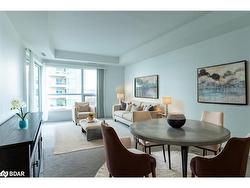 1 BED + DEN CONDO WITH VIEWS OF KEMPENFELT BAY, UNDERGROUND PARKING, STORAGE LOCKER & PREMIUM BUILDING AMENITIES! Picture starting your mornings with the shimmer of Kempenfelt Bay just across the street and ending your evenings on a private balcony watching boats glide through the marina as the sky gently softens into warm sunset hues. This 1-bedroom plus den condo located at 6 Toronto Street #1005 places you in the heart of downtown Barrie, where café patios, boutique shopping, scenic waterfront trails, the sandy beach and beautifully connected biking and walking paths shape a lifestyle that feels both relaxed and alive. Set within the sought-after Waterview Condominiums, a sophisticated grand lobby and refreshed common areas create an impressive first impression, while premium amenities, including a pool, sauna, hot tub, exercise room, games room, library, guest suites, and visitor parking, elevate everyday living far beyond expectations. Natural light pours through the bright, open-concept layout, flowing effortlessly to the walkout balcony with sweeping views of the bay and marina that never lose their magic. The well-equipped kitchen shines with stainless steel appliances, tiled backsplash, tile flooring and a breakfast bar that invites slow mornings and lingering conversations. A calming primary bedroom with a walk-in closet offers a peaceful retreat, while the den transforms with ease into a home office or reading corner. In-suite laundry adds practicality, and an owned underground parking space with an exclusive storage locker completes a setting where waterfront scenery, downtown energy and refined living come together to create a #HomeToStay that feels impossible to forget and even harder to leave!