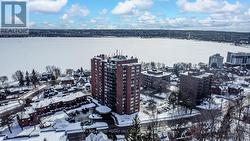 PANORAMIC LAKE VIEWS, DOWNTOWN AT YOUR DOOR & AMENITIES THAT WOW AT THE BAY CLUB! Enjoy panoramic lake views every day at this 2-bed, 2-bath condo offering over 1,200 sq ft of bright, functional living space, with a rare layout featuring no interior step down. The open-concept living and dining area is filled with natural light from oversized windows, while the kitchen features a pass-through to the living room, pot lights, and plenty of white cabinetry. Easy-care flooring and soft, neutral tones throughout create a calm, airy feel. The enclosed sunroom extends the living space with southeast views over Kempenfelt Bay. The layout includes a spacious primary retreat with a private 4-piece ensuite, a second bedroom near a full guest bath, and an in-suite laundry with additional storage. Located in a well-established, reputable building with a strong community feel, The Bay Club offers exceptional amenities including an indoor pool, gym, sauna, squash and tennis courts, party and games rooms, library, guest suites, workshop, potting room, bike storage, car wash bay, secure underground parking, and visitor parking. Professionally maintained grounds and secure entry add to the ease of living. Steps to waterfront trails, shoreline parks, playgrounds, downtown dining, shops, transit, and the MacLaren Art Centre. This #HomeToStay at 181 Collier Street, Unit 803, has a front-row seat to the lake with downtown Barrie as your backyard. (id:27)