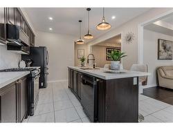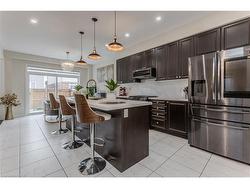 Welcome to a beautifully upgraded family home set in a warm, family-friendly neighbourhood surrounded by parks, walking paths, schools, shops, and all the conveniences growing families appreciate. This detached 2-storey offers a bright, functional layout with modern finishes and thoughtful details designed for everyday comfort and effortless entertaining. Curb appeal shines with a brick and siding facade, an upgraded double garage door (2025), and a stylish front door installed approximately two years ago. Step inside to a bright, welcoming entry enhanced by pot lighting with mobile app control and hardwood flooring that flows seamlessly throughout the main level. The open-concept main floor is ideal for hosting and family connection. The dining room features a tray ceiling that adds character and definition to the space. The upgraded kitchen is a true highlight—complete with quartz countertops (2025), a large island with breakfast bar, custom cabinetry, black stainless Samsung smart appliances, a quartz backsplash, upgraded undermount sink with designer faucet, and modern lighting. The walkout leads directly to the backyard, perfect for summer meals and easy supervision of kids at play. The family room is warm and inviting with an oversized window that fills the room with natural light and a cozy fireplace that creates the perfect backdrop for family movie nights or relaxing evenings. A wooden staircase with iron spindles leads to the second level. The second floor offers a spacious primary bedroom with a 5pc spa-inspired ensuite featuring a soaker tub, dual sink vanity, and glass shower enclosure. Three additional well-sized bedrooms, a 4pc main bathroom, and convenient bedroom-level laundry complete this ideal family layout. Outside, the fully fenced yard (2025) provides plenty of green space for kids to play and a gas line for effortless outdoor BBQs. A wonderful opportunity for families seeking comfort, style, and connection to a thriving community.