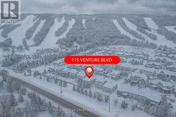 Welcome to 115 Venture Boulevard, ideally located in The Orchard at Craigleith - one of Southern Georgian Bays most sought-after ski-in/ski-out communities. This chalet offers unmatched four-season living with private trail and shuttle access, and is within walking distance to Craigleith and Toronto Ski Club, the Village at Blue Mountain, and the shores of Georgian Bay. The open-concept main level is designed for both gathering and relaxation, featuring a vaulted ceiling, gas fireplace, and expansive windows framing panoramic ski hill views. A loft overlooking the living area provides flexible space for a home office, media lounge, or potential for a fourth bedroom. The kitchen opens to a private backyard patio, backing onto a trail - ideal for summer barbecues and winter snowshoeing. Upstairs, three spacious bedrooms include a primary retreat with a walk-in closet, private balcony, and 5-piece ensuite. Large windows throughout bring in natural light and highlight seasonal views. The unfinished basement, with a rough-in for a bathroom, offers excellent storage and future development potential. A two-car attached garage adds convenience for vehicles and gear. Whether you're seeking a full-time residence or a weekend escape, this home delivers the ultimate ski-lifestyle experience, with a prime location that blends mountain living and year-round recreation. (id:27)