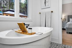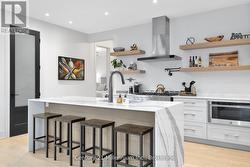 Offered fully furnished turnkey, with all artwork included, this executive home is a showcase of timeless sophistication. Sundrenched interiors span 3426 sqft of open flowing living space, creating a rare fusion of elevated design and effortless luxury. Overlooking a saltwater pool and backing onto protected woodland and the Georgian Trail. This property offers a private beautifully landscaped yard complete with a four-season perennial garden, stone walkways, gazebo, sitting area, & cascading waterfall, creating your own outdoor sanctuary. Inside, the gourmet kitchen is a chef's dream featuring a 6-burner gas stove, pot filler, undercounter microwave, built-in fridge and freezer, whisper-quiet dishwasher, floating shelves and a quartz island with gold accents that add just the right touch of glamour. The walk-in pantry is ideal for entertaining, with storage for everything from dried goods to oversized serving platters. The open-concept living room is anchored by a cozy gas fireplace and framed by oversized windows that offer stunning views of the pool and backyard oasis, creating the perfect setting for both relaxed nights in and lively gatherings. Exquisite craftsmanship is evident throughout, from the 9-foot doors and substantial baseboards to the upgraded hardwood flooring on both the main and upper levels. The show stopping floating staircase makes a striking first impression in the grand entryway. The freshly finished lower level offers flexibility with an entertainment area, wet bar, full bathroom, 2 additional bedrooms, and dedicated space for a second laundry or potential sauna, perfect for hosting guests, family, or live-in support. Located just minutes from Thornbury, world-class golfing at Georgian Bay Golf Club, the shores of Georgian Bay, and Ontario's top ski clubs including Georgian Peaks, Craigleith, Alpine, Osler, and Blue Mountain. Whether you're seeking a four-season adventure or refined relaxation, this home places you at the heart of it all!. (id:27)