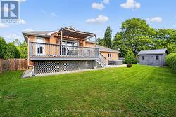 Beautiful 2+2 bedroom raised bunglow on a quiet dead end street in downtown Thornbury, steps to the waterfront and downtown shops and restaurants. This home has been meticulously cared for and updated since the current owner took possession and features an open plan main level with refaced kitchen, new quartz counters and new hardware and a gas f/p in living room. The primary features a new bathroom with tiled shower and a walk in closet. There is also a guest bedroom and 2 piece powder room. The lower level has 2 good sized guest bedrooms, with updated 4 piece bathroom, a laundry room and large rec. room. The garage has been drywalled, insulated and an epoxy floor installed along with expansive steel cabinetry. Other upgrades include all new flooring, paint, new rear cement patio with hot tub and shed, new furnance 2019, new a/c 2022. (id:27)