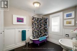 Unique five bedroom, three and a half bath home in the heart of Bracebridge. Walking distance to downtown with a view of the Muskoka River. Multiple living spaces, high ceilings, balcony, primary ensuite bath and so much more. Current use has retail on the main floor and residence above. Potential for multiple residential units, multi-generational home or a live where you work scenario! New official plan will allow for expanding the residential and/or commercial uses. So many possibilities for this building to be just what you have been looking for. Lots of parking with potential for more if needed. Full basement. This is a land and building sale, existing bike shop is not included (could be negotiated separately). (id:27)