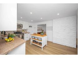 Welcome to 15 Harvest Lane — a beautifully updated 4-level side split in Brantford’s highly loved Greenbrier neighbourhood. This is the kind of street where kids ride their bikes, neighbours actually say hello, and everything you need is just a short walk away. With 3+1 bedrooms and 2 full and renovated bathrooms, this home has the perfect mix of modern updates and comfortable family living. The stone walkway and covered front porch set such a welcoming tone before you even step inside. On the main level, you’ll find a bright living room with a gorgeous floor-to-ceiling wood-burning fireplace (hello, cozy winter nights!), an inviting dining room, and a fresh, functional kitchen with impressive stainless steel appliances, white cabinetry, a great island for weekday breakfasts, and a walk-out to a large two-tier deck overlooking the fully fenced backyard — perfect for kids, pets, and summer BBQs. Upstairs are three generous bedrooms with hardwood flooring and fantastic closet space — ideal for a growing family. The lower level gives you even more room to spread out, with a cozy family room plus a bonus area currently used as a kids’ playroom. And the basement? Fully renovated just two years ago and such a huge value add — featuring a stylish rec room, a spacious 4th bedroom, a modern full bathroom, and a bright, organized laundry area. Other updates include new flooring on the main level, California shutters, and a newer furnace, heat pump, A/C (2024) to keep you comfortable all year long. If you’re looking for a move-in-ready home in a friendly, family-oriented neighbourhood with quick access to parks, schools, shopping, and the 403 — this one truly checks all the boxes. Come see why Greenbrier is so loved, and picture your family settling right in.