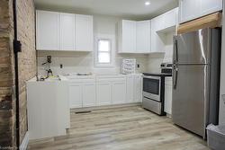 Not ready to buy? No problem! We have a stunning, renovated 2 bedroom apartment with a basement ready to go for the next renter! Fully renovated from top to bottom with high end finishes, including LVP throughout and freshly painted - this unit is a show stopper! This unit provides it's own entrance to the main floor level where this large 2 bedroom, 1 bathroom apartment is bright and spacious. The full bathroom has been completely gutted with a new tub/shower, backsplash, vanity and mirror/lighting. Enjoy the crisp, white brand new kitchen with loads of cabinetry and an area to "eat in." Open concept to the space is a large living area with large windows. The brick feature wall is striking! LED pot lights throughout. Two main floor bedrooms are perfect for a young couple or single professional. This unit gets use of the basement. Utilities are separate!
