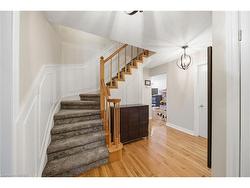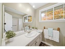 Welcome to this large 2 storey home in a family oriented neighbourhood with no rear neighbours. Located on a very quiet street in the north end of Brantford, you can grow your family for years to come in this property which boasts 4 bedrooms on the upper level, and 2.5 bathrooms throughout. Lots of living space on all floors. Walking up the front pathway of this beautiful house leads you into the foyer, which is spacious and welcoming. The main level consists of a large dining and living room combo, a good sized kitchen overlooking the backyard, and another living / den area with quick access to the rear deck. Lots of windows let light in at just the right spots. You will also find a 2 piece bathroom on the main floor which is perfect for guests, and a laundry room with access to both the garage and the side yard. Wander upstairs on a beautiful staircase with wainscoting and at the top of the landing you will find 4 good sized bedrooms. The primary bedroom is spacious, boasting a walk-in closet, a full 4 piece ensuite bathroom, and a gorgeous window and sitting area for relaxing. The second level also has another full 4 piece bathroom in the main hallway. A full basement awaits your personal touch to add to the already over 2000 sq ft above grade. Double car garage and driveway. Lots of potential to be had in this home, and the location is second to none. Located close to all amenities, good schools, the 403 highway, and many outdoor activities.